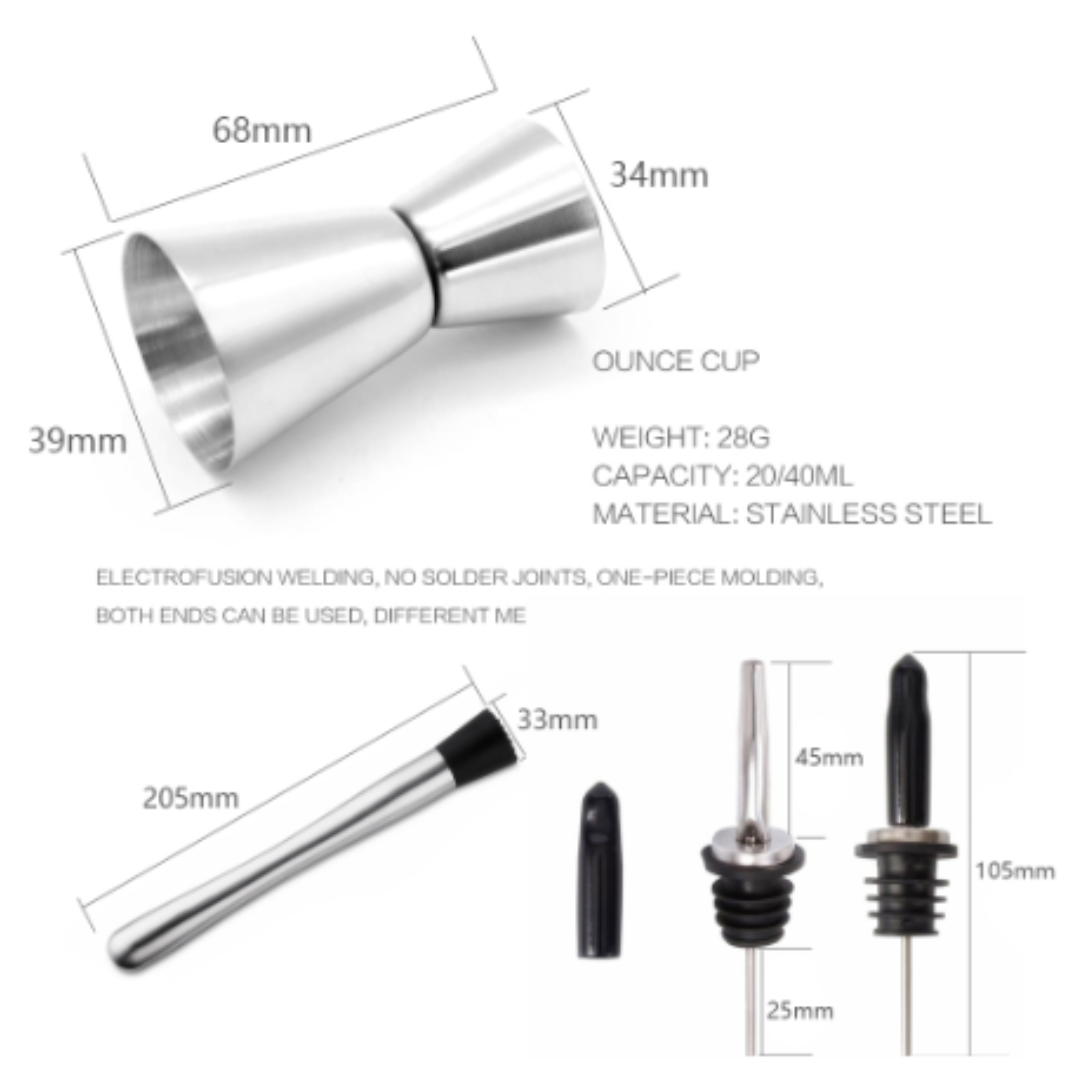 6pcs Cocktail Set Shaker Mixer Stainless Steel Drink Making Tool Kit for Home Bar Use