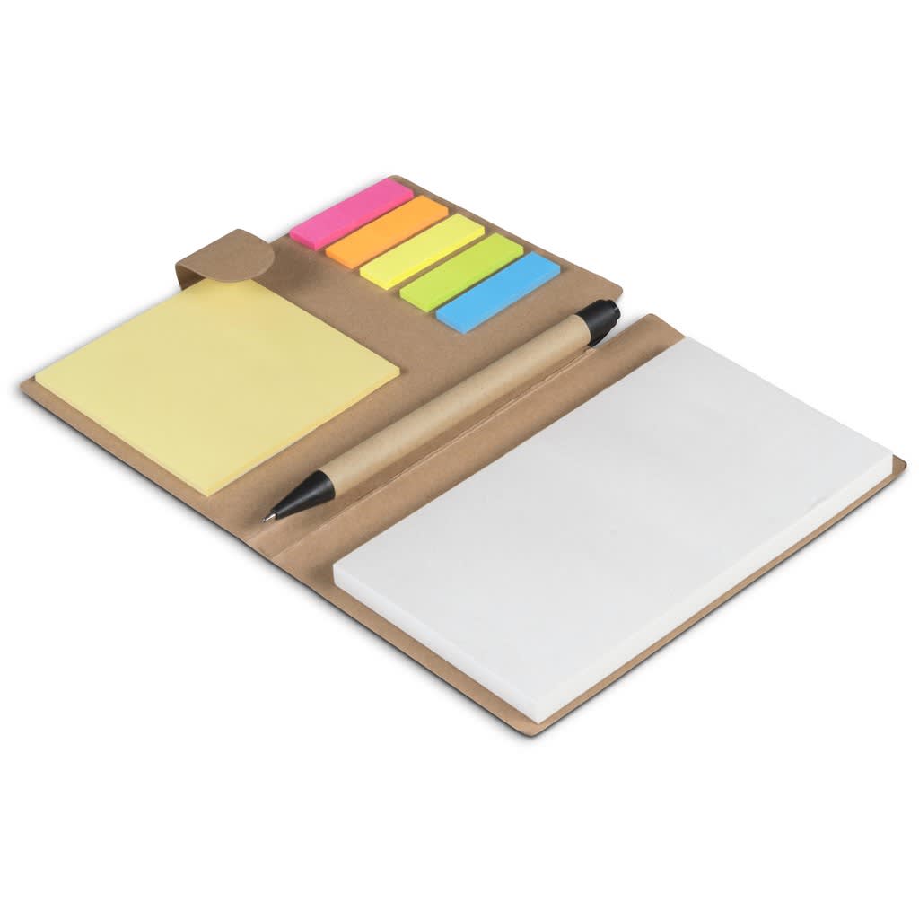 kraft paper barrel. Also included are a notepad with 70 lined sheets, sticky
