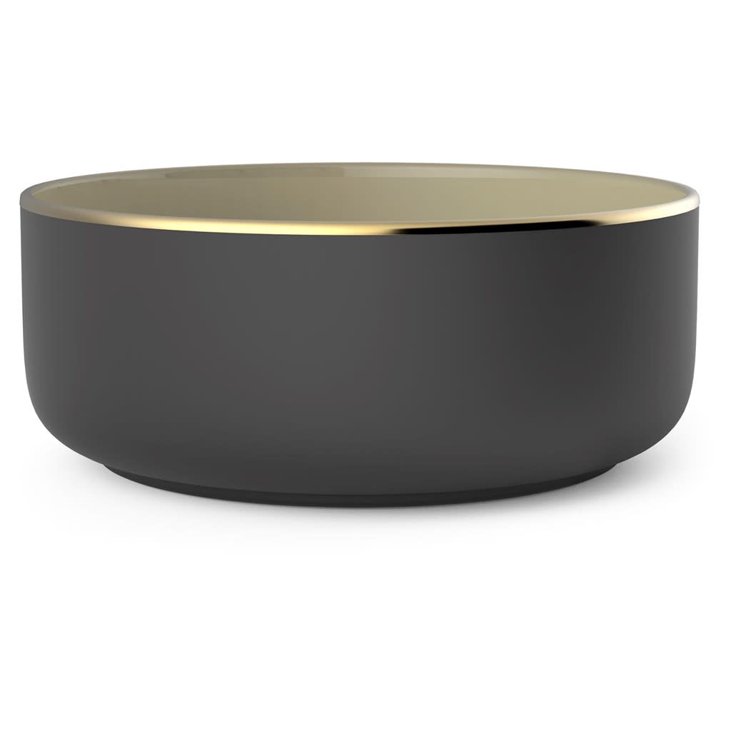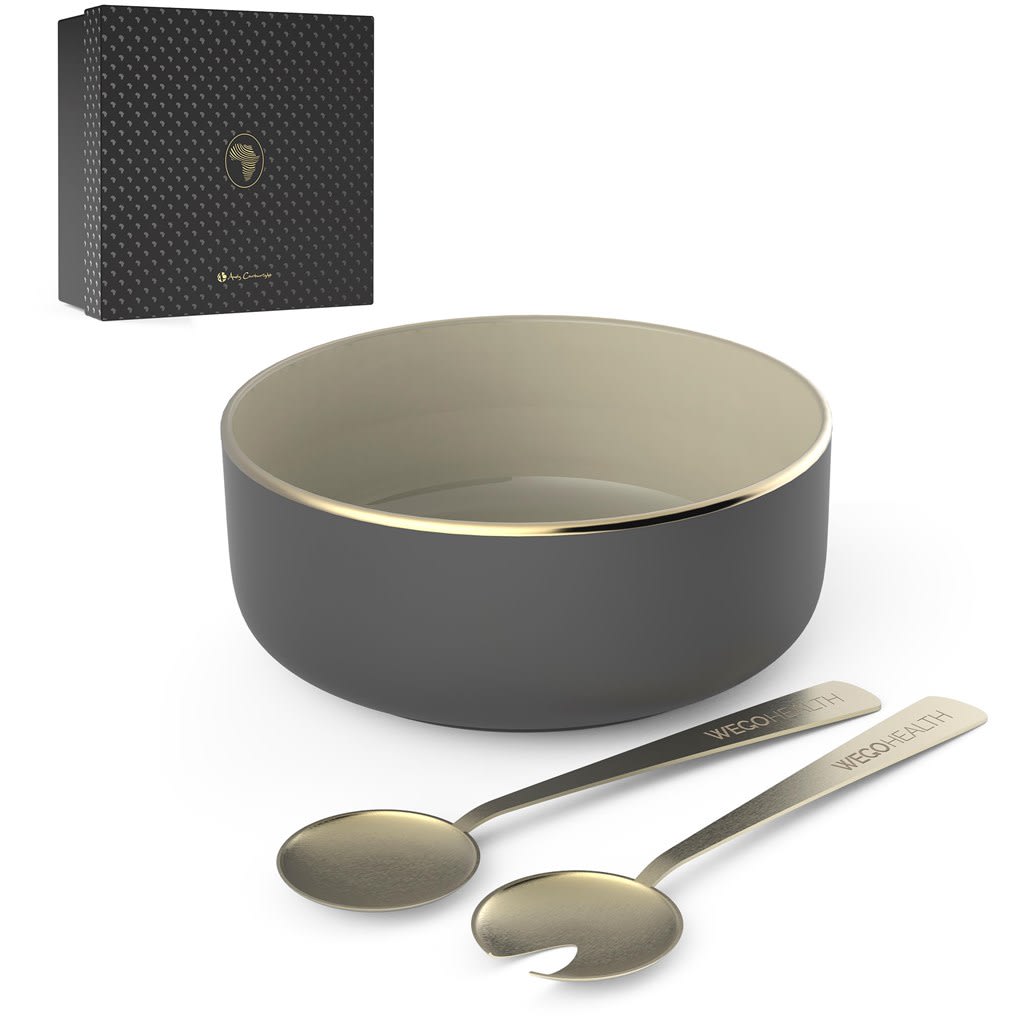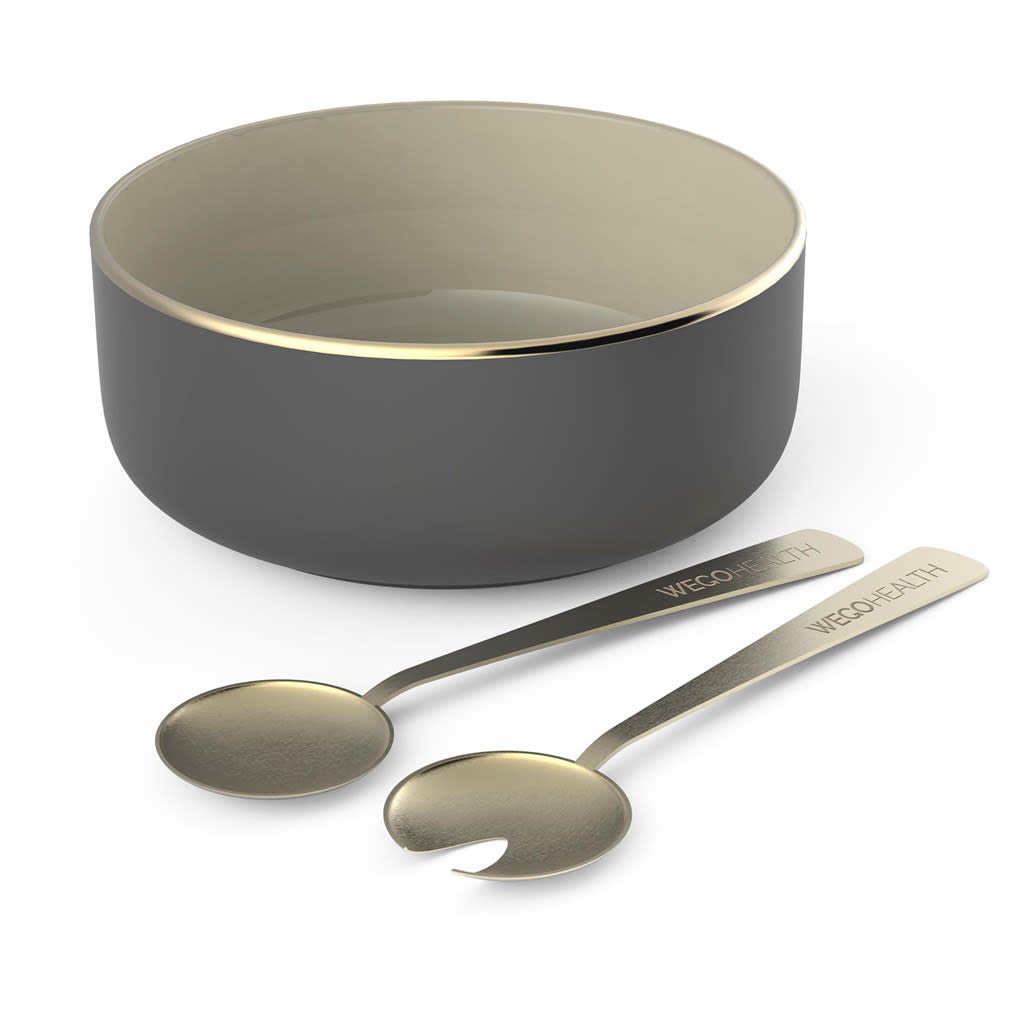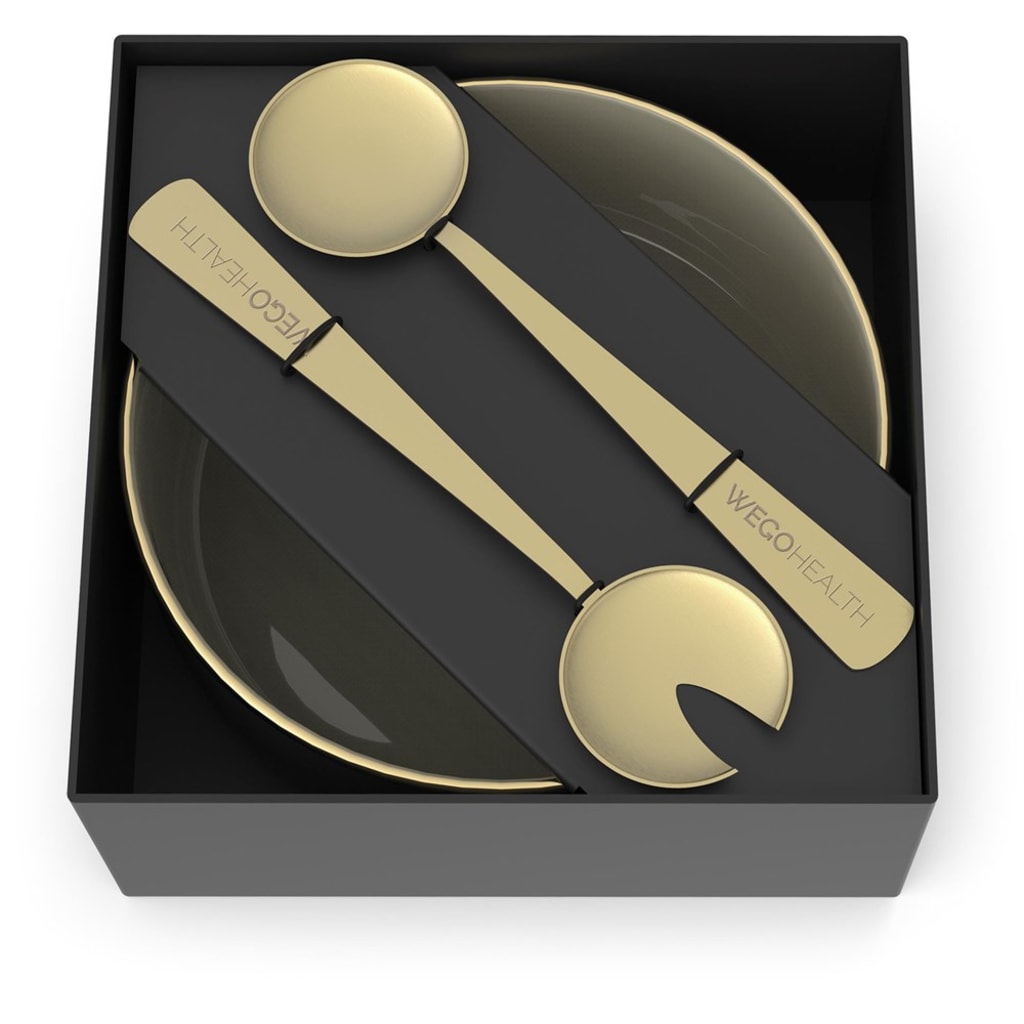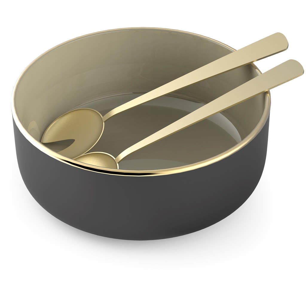 elegance. The round bowl and gold-plated servers are useful for a host of side