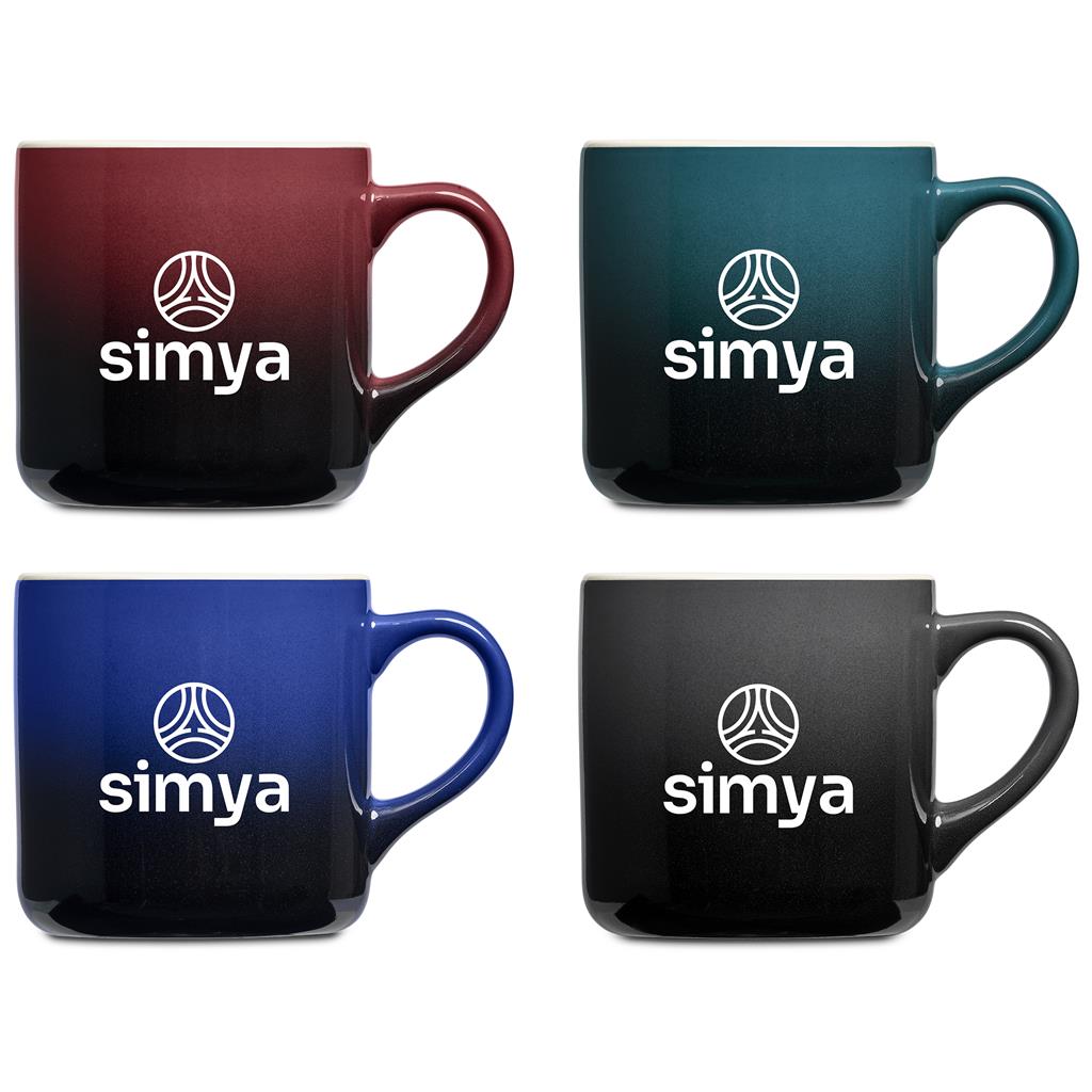 features 4 mugs, each a different colour, with the same gradient design finish.