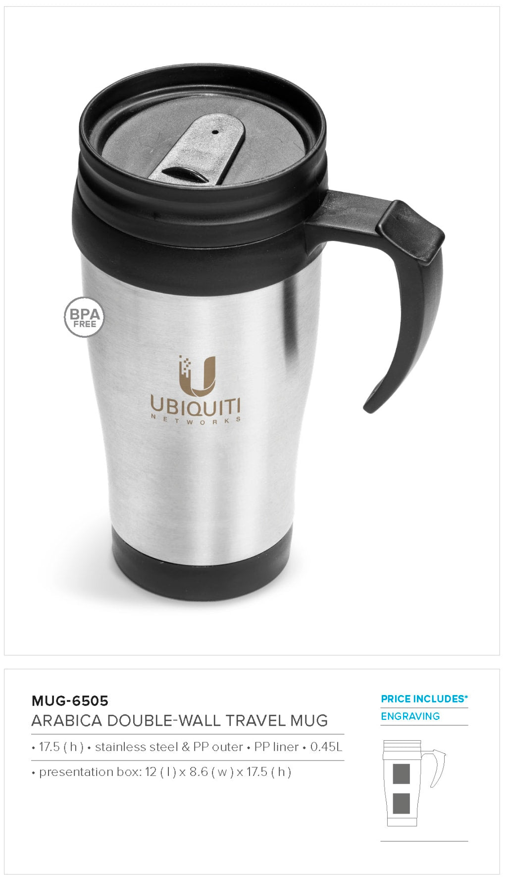 Arabica Stainless Steel & Plastic Double-Wall Mug - 450ml