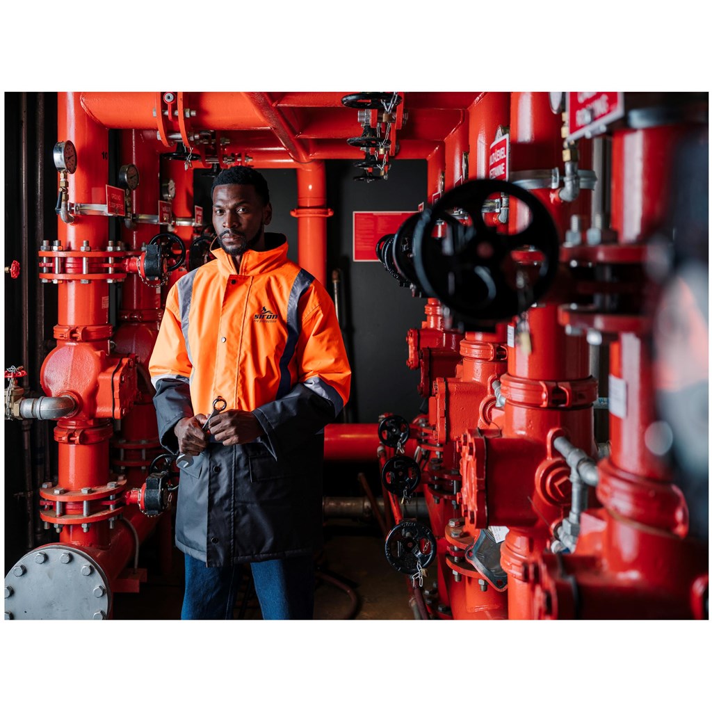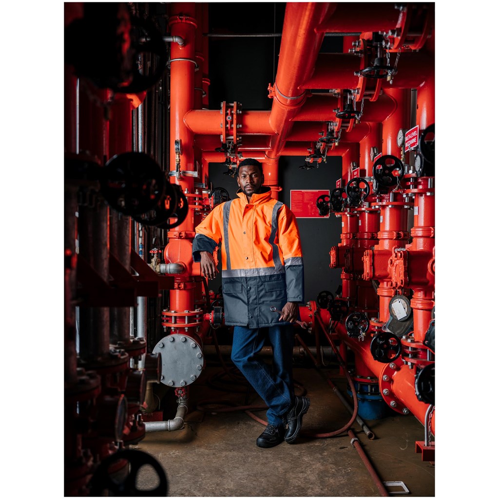 * two-tone jacket with silver 50mm reflective tape detail • concealed zip