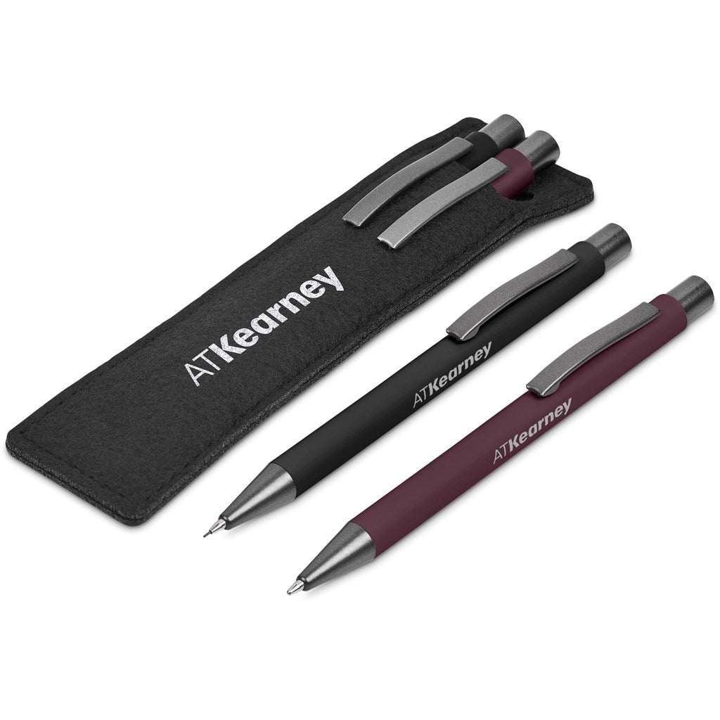 A black metal pencil and a metal pen in a choice of colours are paired together