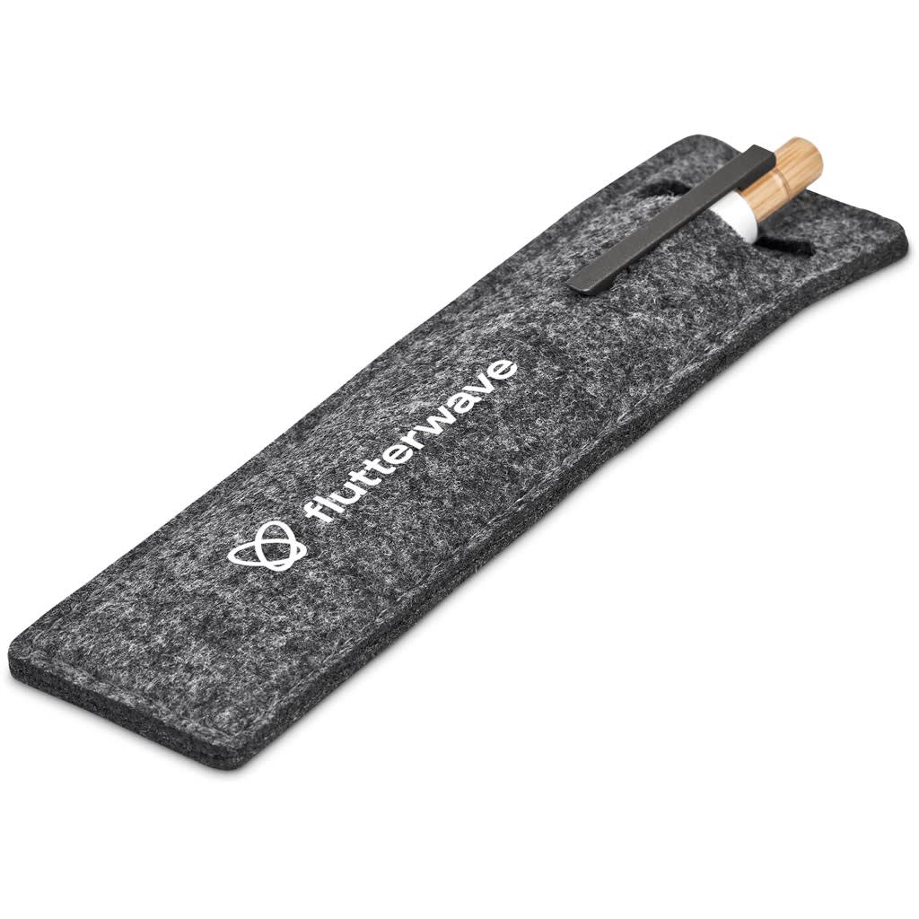 bamboo. It’s packaged in a felt pouch made from recycled single-use plastic