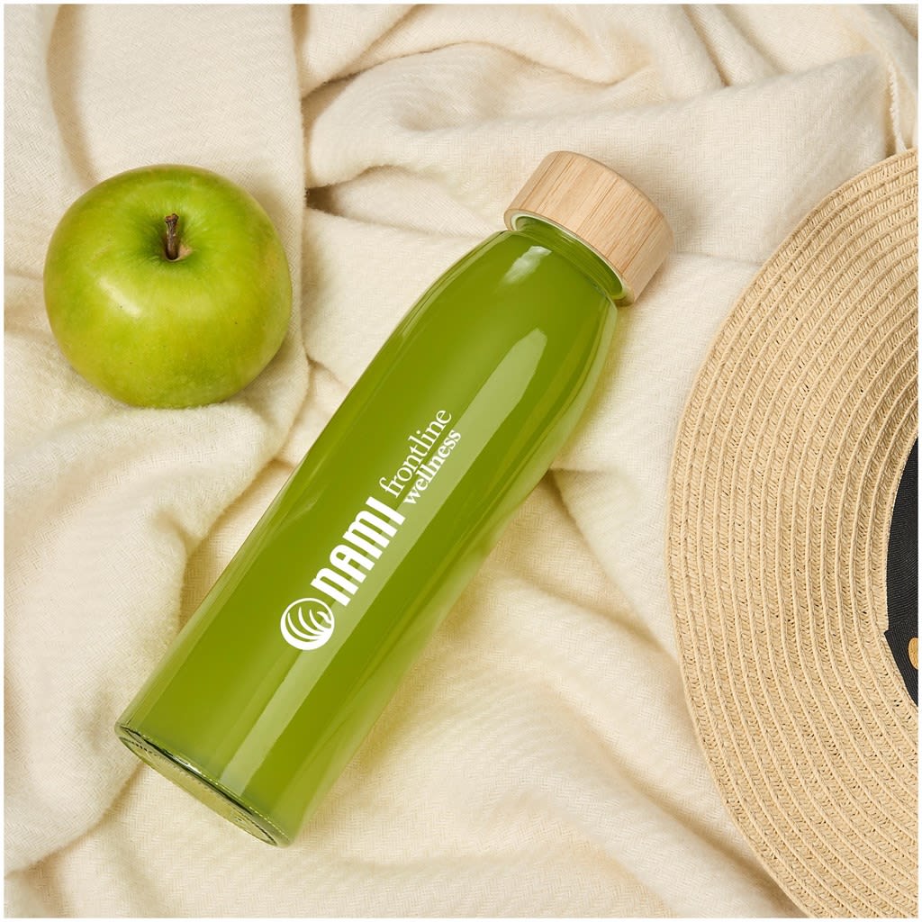 Glass and bamboo combine beautifully to create a water bottle with a clean and