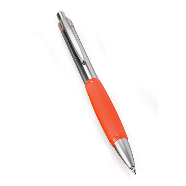 Crafted from metal, it features a comfortable rubber grip for extended writing