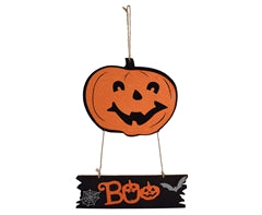 with a playful Boo sign below, complete with pumpkin faces, a bat, and a spider