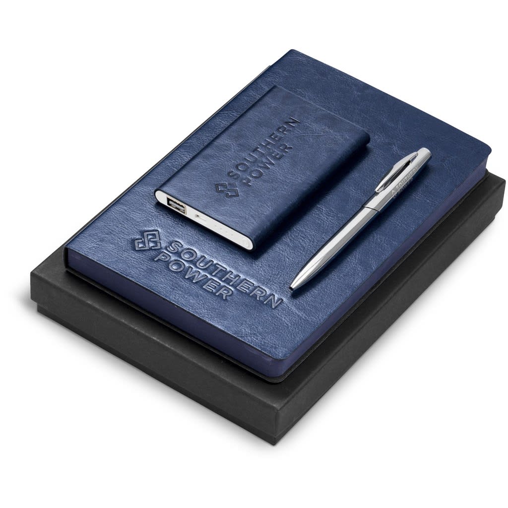 Set includes a Renaissance Slim 4000 mAh Power Bank, Renaissance Notebook &