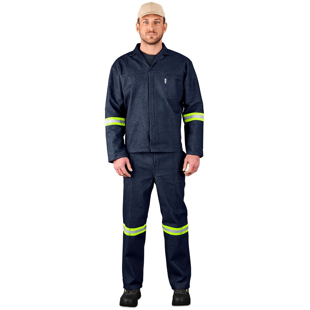 Vintage 100% Cotton Denim Conti Suit - Reflective Arms, Legs & Back - Yellow Tape